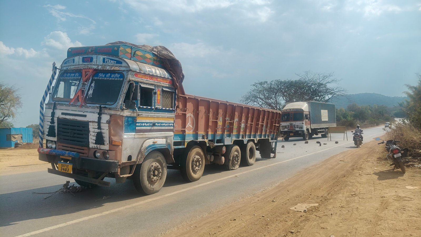 केशकाल ढाबा के सामने 14 चक्का ट्रक 5 दिनों से खराब, पुलिस ने लगाया बैरिकेट