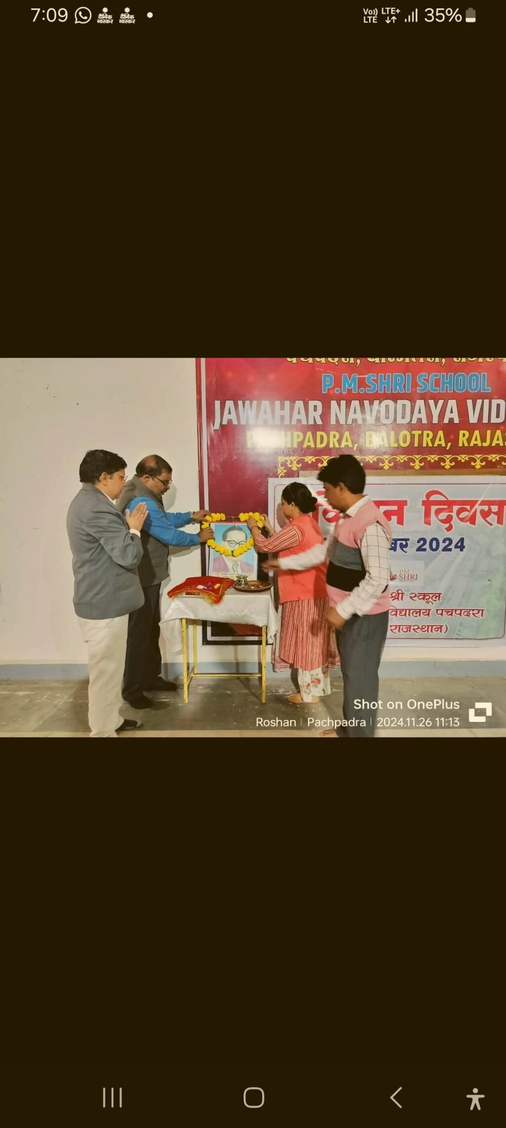 बालोतरा, 26 नवंबर। पीएम श्री स्कूल जवाहर नवोदय विद्यालय पचपदरा में प्रभारी प्राचार्य डॉ. त्रिलोचन कुमार शुक्ला की अध्यक्षता में मंगलवार को संविधान दिवस के उपपक्ष में कार्यक्रम का आयोजन किया गया।