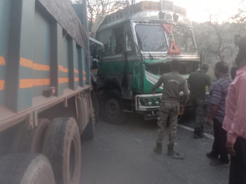 *आकिब नथानी कि रिपोर्ट:- आज दिनांक 29 अप्रैल 2025 को शाम के लगभग 5 बजे के आसपास केशकाल घाट में एक बड़ा हादसा हुआ। नारायपुर से लोहे की गिट्टी लोड ले कर रही टाटा ट्रक, जिसका नंबर CG 21 J 4035 था, की ओवरस्पीडिंग के कारण रायपुर की ओर से आ रही एक ट्रक, जिसका नंबर CG 17 X 0486 था, से टक्कर हो गई।
