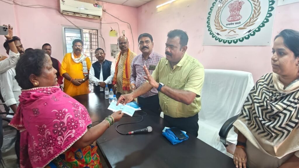 दिनांक 26.09.2025 को जनपद कार्यालय विश्रामपुरी में आयोजित कार्यक्रम में माननीय विधायक श्री नीलकंठ टेकाम के करकमलों से ग्राम रावशवाही (वितरण केन्द्र बड़ेराजपुर) में 20.09.2025 को हुई विद्युत दुर्घटना के मृतकों –