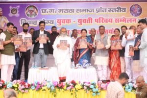 केशकाल! छत्तीसगढ़ मराठा समाज रायपुर के मार्गदर्शन में जिला मराठा समाज राजिम जिला गरियाबंद के तत्वावधान में धर्म नगरी राजिम में मातंर्ड मल्हारी खंडोबा और आई तुलजा भवानी मंदिर के रजत जयंती स्थापना दिवस के अवसर पर छत्तीसगढ़ स्तरीय विवाह योग्य मराठा युवक-युवती परिचय सम्मेलन 2026 और युवक-युवती परिचय पत्रिका के साथ ही 53 वें श्री खंडोबा वार्षिक उत्सव रतनपुर जिला बिलासपुर के पत्रिका का विमोचन किया गया।…..कार्यक्रम के मुख्य अतिथि सांसद रूपकुमारी चौधरी ने छत्रपति शिवाजी महाराज को याद करतें हुए बताया कि उनकी मां जीजा माता ने एक आदर्श गुरु के रूप में धर्म नीति और संस्कार के बीज बचपने में ही उन्हें दिए जिसके कारण भारत में हिन्दवी साम्राज्य के तहत सनातन धर्म का पुनरूत्थान हुआ। कार्यक्रम में महिलाओं और युवक-युवतियों की सक्रिय भागीदारी की प्रसंशा करते हुए फिजूल खर्ची से बचने और विचारों की सम्पन्नता बढ़ाने पर जोर दिया। छत्तीसगढ़ मराठा समाज के प्रदेश अध्यक्ष राघोबा महाड़िक ने बताया कि मातंर्ड मल्हारी खंडोबा और आई तुलजा भवानी के मंदिर की स्थापना 1990 से लेकर 2026 के मराठा समाज के सफर में मराठा समाज के सदस्यों का अतुलनीय योगदान रहा जिसके लिए छ.ग. मराठा समाज प्रति स्तरीय युवक *युवती परिचय सम्मेलन*