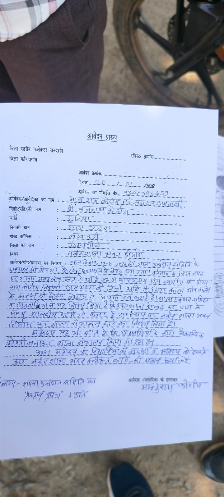 नवीन शाला भवन की मांग को लेकर ग्रामीणों ने कलेक्टर को सौंपा ज्ञापन