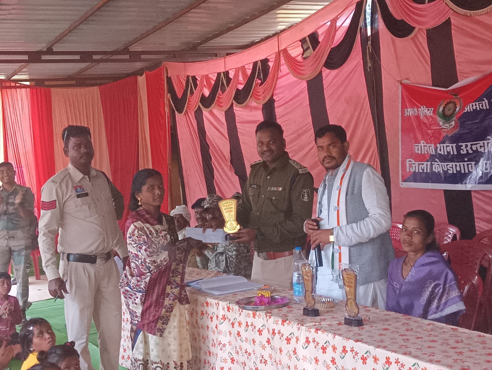 श्री मान पुलिस *अधीक्षक* महोदय कोंडागांव श्री पंकज चंद्रा (भा.पु.से.) के आदेशानुसार एवं श्री मान *अतिरिक्त* पुलिस अधीक्षक महोदय कोंडागांव श्री कौशलेन्द्र देव पटेल (रा.पु.से.) के निर्देशानुसार तथा श्री मान अनुविभागीय अधिकारी (पुलिस) *फरसगांव* श्री अभिनव उपाध्याय (रा.पु.से.) के पर्यवेक्षक मे आज दिनांक 26.01.2026 को *सामुदायिक* पुलिसिंग के तहत थाना *उरंदाबेडा* द्वारा ग्राम कोकड़ा जुगानार मे महिला *प्रतिभागियो* का मटका फोड़, खुर्शी दौड़, एवं रस्सा खींच *_प्रतियोगिता_* का स्कूल खेल मैदान ग्राम कोकड़ा जुगानार मे शानदार एवं *सफल* आयोजन कराया गया, मटका फोड़ के प्रथम राउंड मे 21 महिला भाग लिए द्वितीय राउंड मे 05 महिला जिसमे से ग्राम कोकड़ा जुगानार की श्री मति सुमित्रा मंडावी प्रथम स्थान प्राप्त की इसी प्रकार महिला कुर्सी दौड़ मे 21 महिला भाग ली जिसमे 20 राउंड मे ग्राम कोकड़ा जुगानार की कु. रजन्ति सलाम प्रथम एवं श्री मति सरिता नाग द्वितीय स्थान पर प्राप्त की, इसी प्रकार महिला रस्सा खींच प्रतियोगिता मे एक तरफ 18 महिला एवं दूसरे तरफ 18 महिलायो का तीन राउंड चला जिसमे ग्राम कोकड़ा जुगानार के निचे पारा की महिला टीम प्रथम एवं ग्राम कोकड़ा जुगानार बीच पारा की महिला टीम द्वितीय स्थान प्राप्त की, उक्त महिला खेल प्रतियोगिता मे जिला पंचायत सदस्य श्री जयलाल नाग, सरपंच कोकड़ा जुगानार सुश्री बसंती नाग उप सरपंच कोकड़ा जुगानार श्री मति राज बाई नाग, (ग्राम प्रमुख) श्री मंगतू राम सलाम, (ग्राम पटेल) सुखदेव सलाम, (माटी गायता) पूनऊ राम सलाम (वार्ड पंच), लच्छि राम नाग, दिनेश नाग,वाढ़े राम मंडावी, कमलेश मंडावी, श्री मति रमसिला सलाम, श्री मति दसई बाई उसेंडी, अमर सिंह उसेंडी, समलू सोरी, श्री मति मंगल दाई नेताम, श्री मति फूलमती नेताम बली राम सलाम, कमलेश नाग, राजू राम बघेल, विजय मरकाम, पवन मरकाम जोहन नाग, विक्रम मंडावी, रवि शंकर सलाम, बंसी नेताम एवं समस्त ग्रामवासी कोकड़ा जुगानार महिला पुरुष बच्चों की उपस्थिति मे महिला खेल प्रतियोगिता सभी के सहयोग से शानदार *आगाज* कर मटका फोड़ मे प्रथम स्थान प्राप्त करने वाली श्री मति सुमित्रा मंडावी, कुर्सी दौड़ मे प्रथम स्थान प्राप्त करने वाली कु.रजन्ति सलाम एवं द्वितीय स्थान प्राप्त करने वाली श्री मति सरिता नाग तथा रस्सा खींच मे प्रथम स्थान प्राप्त करने वाले ग्राम कोकड़ा जुगानार निचे पारा महिला टीम एवं द्वितीय स्थान प्राप्त करने वाले ग्राम कोकड़ा जुगानार बीच पारा के महिलाओ को प्रतिक चिंन्ह एवं नगद पुरुस्कार देकर सम्मानित किया गया, उक्त महिला खेल प्रतियोगिता मे,ग्रामीणों द्वारा पुलिस के प्रति विश्वास एवं अपना पन,तथा सद्भभावना साफ नजर आ रहा था, उक्त महिला खेल हेतु प्राथमिक उपचार किट, स्वल्पाहार, 