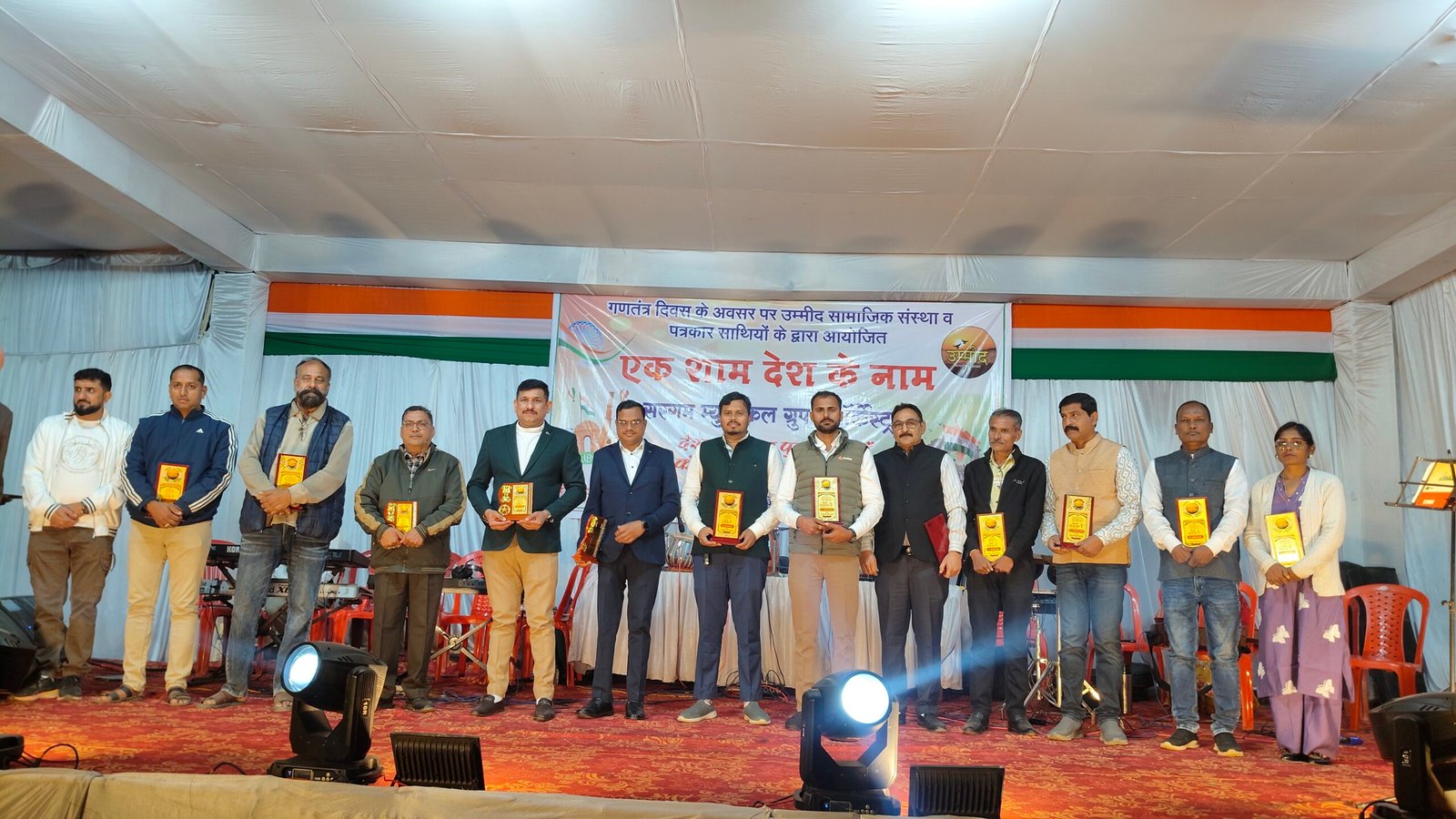 फरसगांव :- गणतंत्र दिवस के अवसर पर फरसगांव में उम्मीद संस्था, केवी जनरल स्टोर व पत्रकार साथियों के द्वारा “एक शाम देश के नाम” सरगम म्यूजिकल ग्रुप आर्केस्ट्रा का भव्य आयोजन सोमवार की रात फरसगांव नगर के जनपद स्कूल मैदान में किया। कार्यक्रम की सुरुवात रात करीब 9 बजे अतिथियों के द्वारा दिप प्रज्वलित कर लिया गया। जिसके बाद कोंडागांव के नियाज खान और उसके सरगम म्यूजिकल ग्रुप के द्वारा मनमोहक देशभक्ति व पुराने गीतों के साथ शानदार प्रस्तुति दी गई। दर्शकों के लिए बैठने की लिए कुर्सी की व्यवस्था भी की गई थी. कार्यक्रम में फरसगांव एसडीओपी अभिनव उपाध्याय एवं नगर पंचायत सीएमओ मयंक बसंतवानी और नगर की एक बच्ची ने भी देश भक्ति गानों का गायन कर अपनी शानदार प्रस्तुति दी। उम्मीद संस्था, केवी जनरल स्टोर एवं पत्रकार साथियों के द्वारा इस कार्यक्रम पधारे अधिकारियों को स्मृति चिन्ह देकर सम्मानित किया गया। इस दौरान फरसगांव एसडीएम अश्वन कुमार पुसाम, एसडीओपी अभिनव उपाध्याय, वन विभाग के एसडीओ एनके सिन्हा, नगर पंचायत अध्यक्ष प्रशांत पात्र, कांग्रेस कमेटी जिला अध्यक्ष रवि घोष, नगर पंचायत सीएमओ मयंक बसंतवानी, गणेश टावरी, साइबर प्रभारी सौरव उपाध्याय, पार्षद संगीता राव, प्रवीण राव, गणेश जायसवाल, मोहम्मद फिरोज़ मेमन, डिक्की जायसवाल, पत्रकार कुलजोत संधू , प्रकाश नाग, नीरज उपाध्याय, अकरम कच्ची, इमरान पारेख,भरत भारद्वाज, हरीश साहू सहित बड़ी संख्या में नगर वासी उपस्थित रहे।