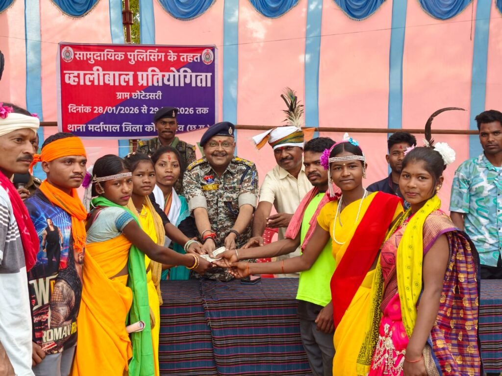 कोण्डागांव पुलिस अधीक्षक श्री पंकज चंद्रा (भा0पु0से0) के निर्देशानुसार एवं अतिरिक्त पुलिस अधीक्षक श्री कौशलेंद्र देव पटेल तथा अनुविभागीय अधिकारी (पुलिस)मर्दापाल श्री सतीश भार्गव के मार्गदर्शन में सायबर जागरूकता एवं नए कानूनों के संबंध लोगों को जागरूक करने के साथ खेल के माध्यम से आम ग्रामीणों एव पुलिस के बीच मधुर संबंध स्थापित करने एवं सहयोग की भावना उत्पन्न करने हेतु अतिसंवेदनशील क्षेत्र थाना मर्दापाल के ग्राम छोटे उसरी में सामुदायिक पुलिसिंग के तहत 02 दिवसीय दिनांक 28-01-2026 से दिनांक 29-01-2026 तक बॉलीबाल प्रतियोगिता का आयोजन किया गया।